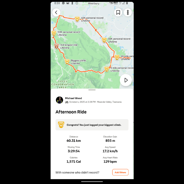 Uncle Micky — we are proud of your Tasmania Trail bike ride for Amelia in incredibly bad weather